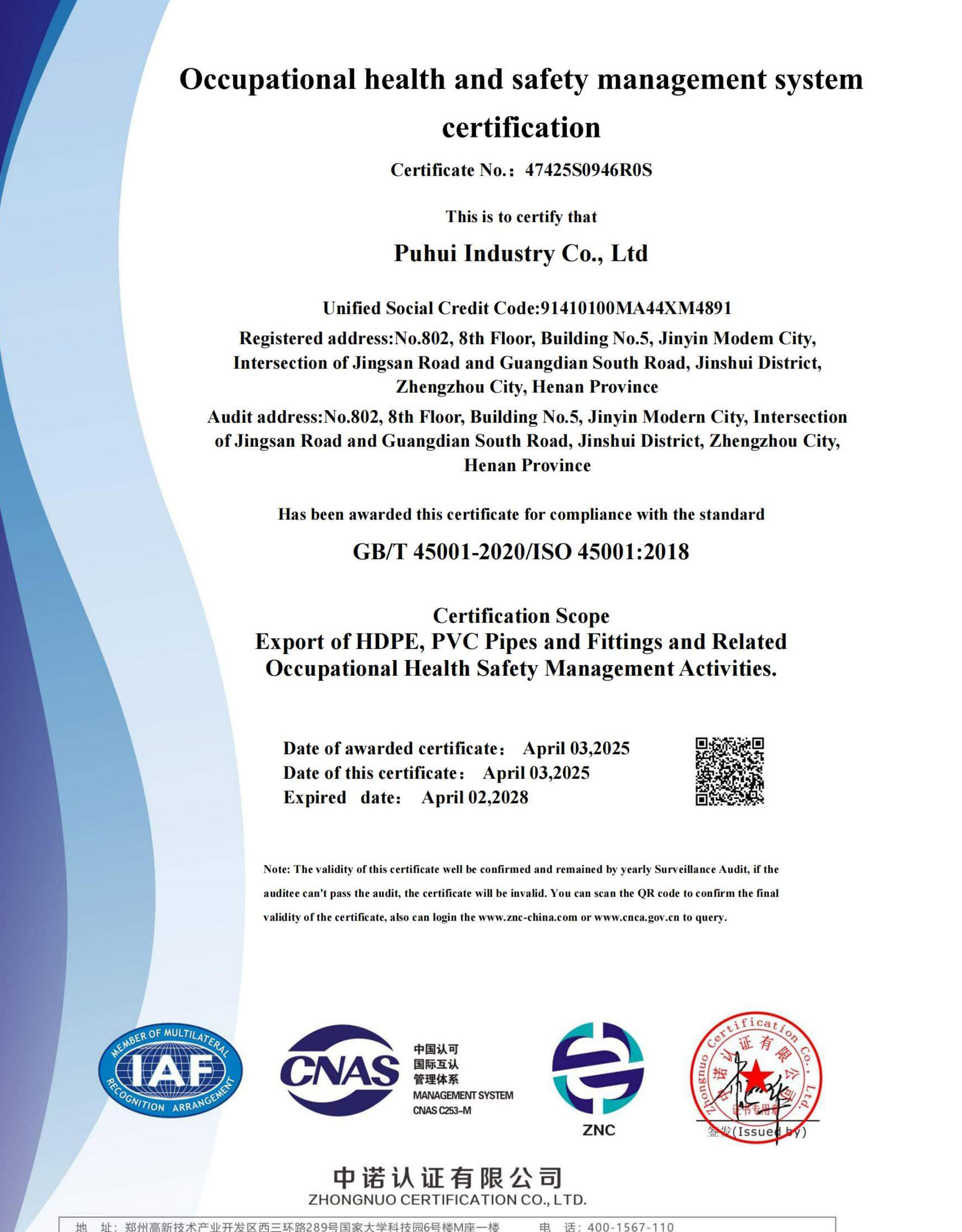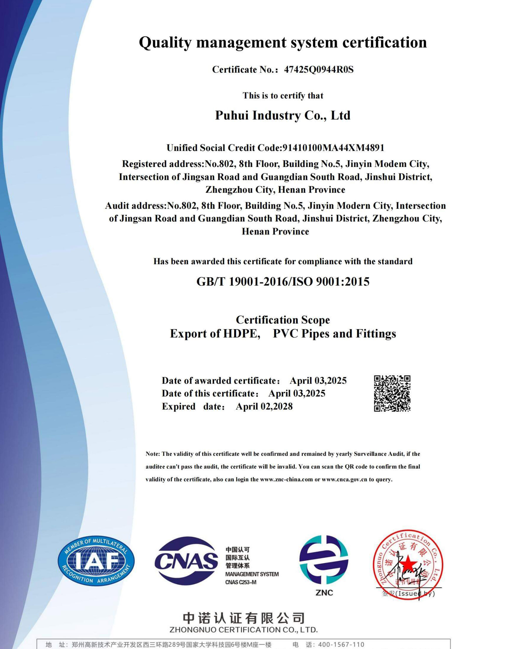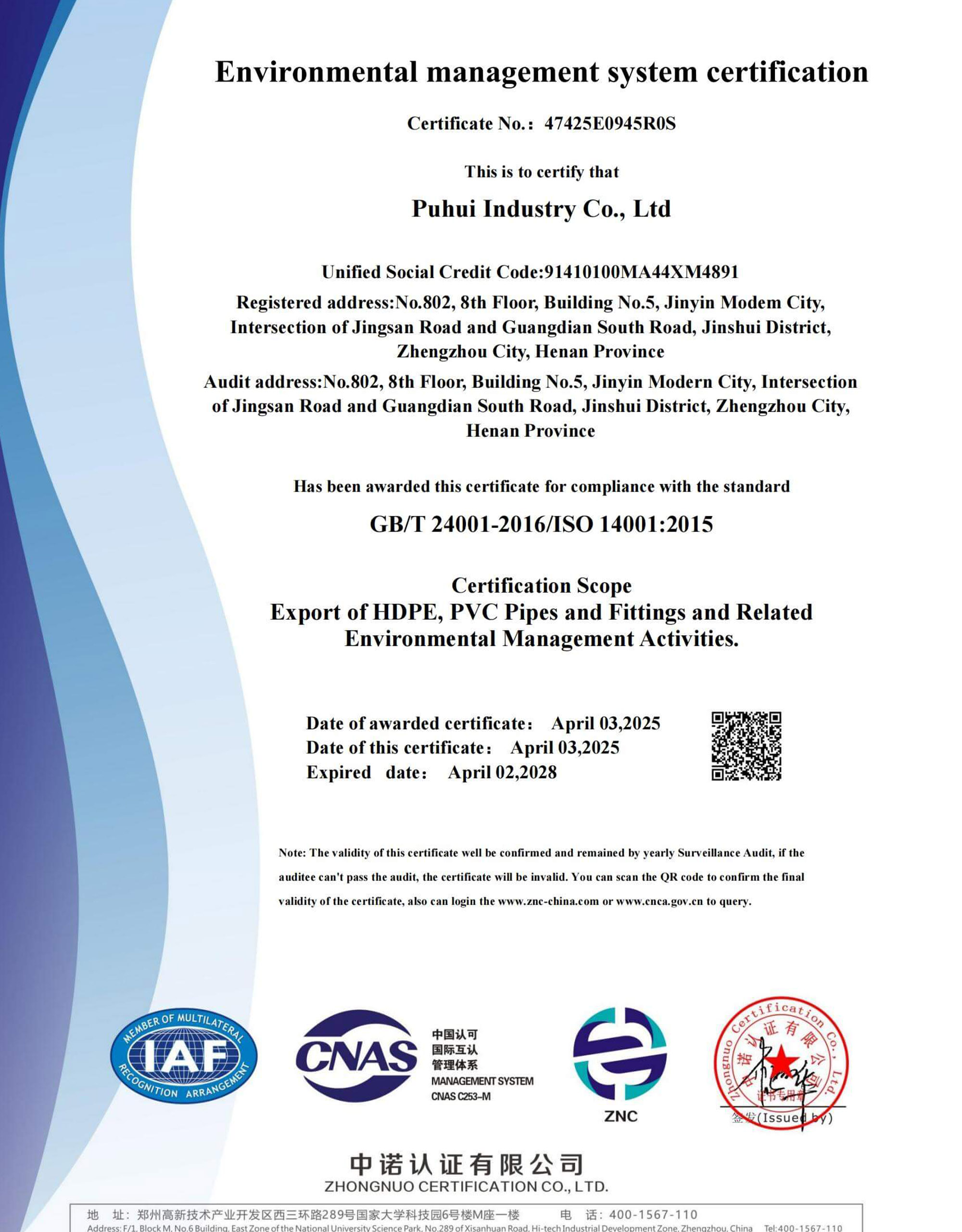 PE100 y PE4710 Tuberías y Accesorios de HDPE